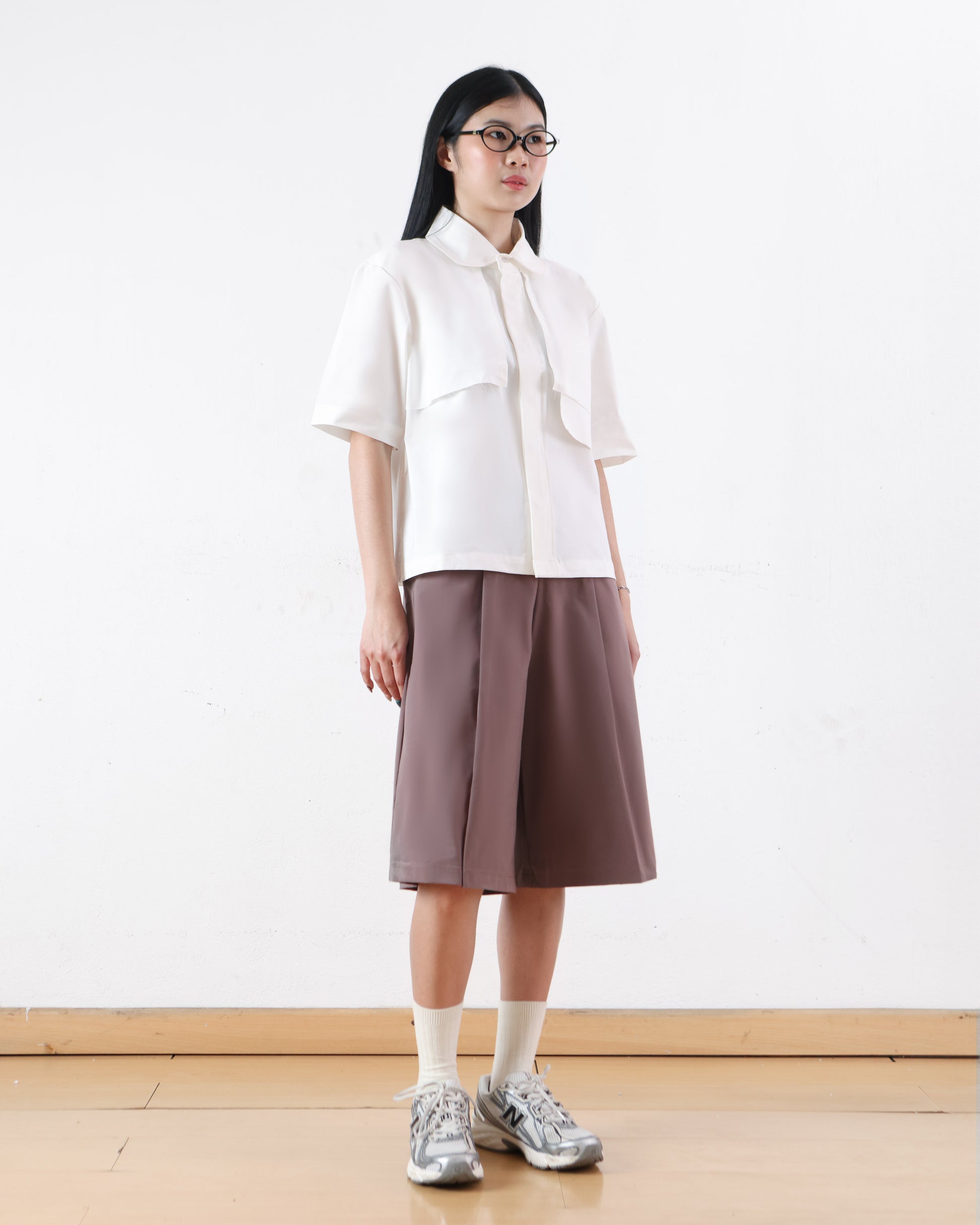 Asymmetrical Pockets Cropped Shirt